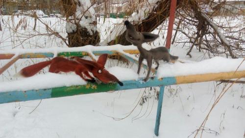 - Пряжа NAKO Gold Fine DELICATE, 100г./500м., 40% мохер 60% акрил, или любую другую выбранную вами пряжу (кирпичного, рыжего цвета, чуть меньше половины моточка, немного чёрной пряжи для кончиков лапок и белой для кончика хвоста), серый цвет для волка.