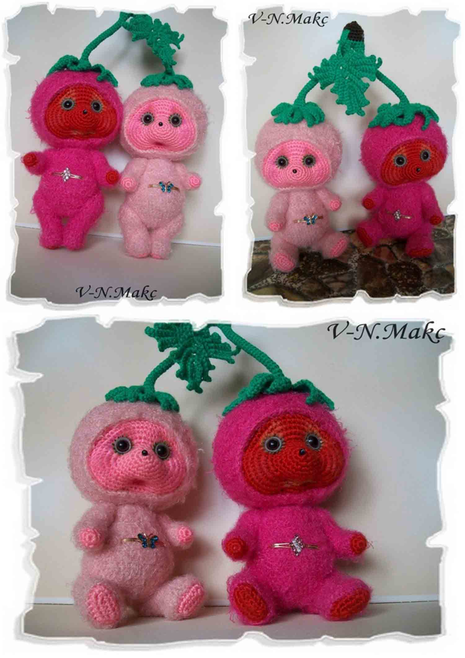 Малышки-Ягодки связаны из двух пряж- Лотос и Валери,ручки и ножки на шплинтовом креплении