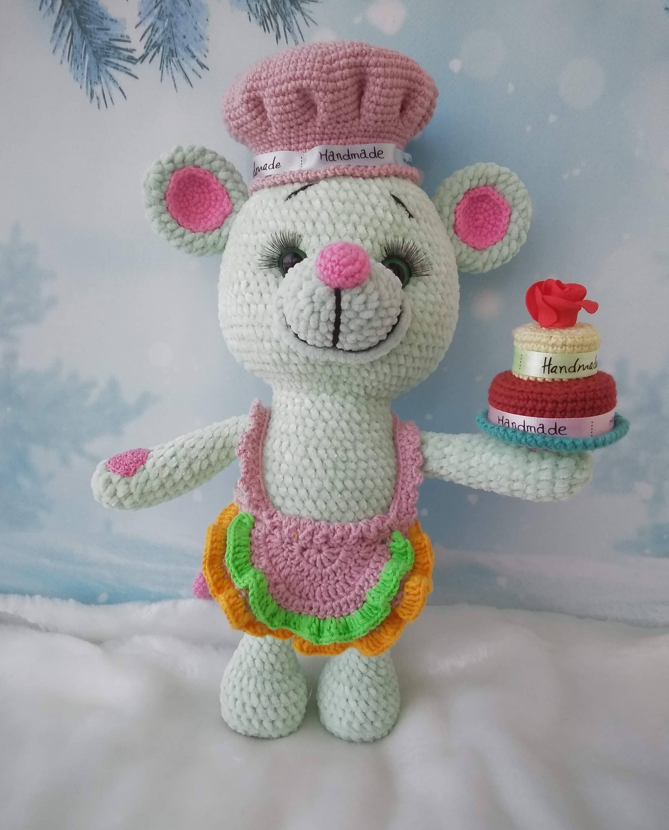 Высота с колпачком 34 см. Связана из ЯрнАрт Велюр и Газзал беби коттон, крючок 2 мм