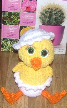 Результат тестирования авторской игрушки по МК Оксаны oksiks. Цыпленок А вот и Я, не ждали! . Использованные материалы- спицы 2,0,Пряжа желтая "Нежность"от Назар 85м/50гр-велюр, Софти от Ализе 115м/50гр в 2 сложения.Рост готовой цыпы 18см. Оксаночка ,большое спасибо за доверие!!!И за такую прелесть!!!