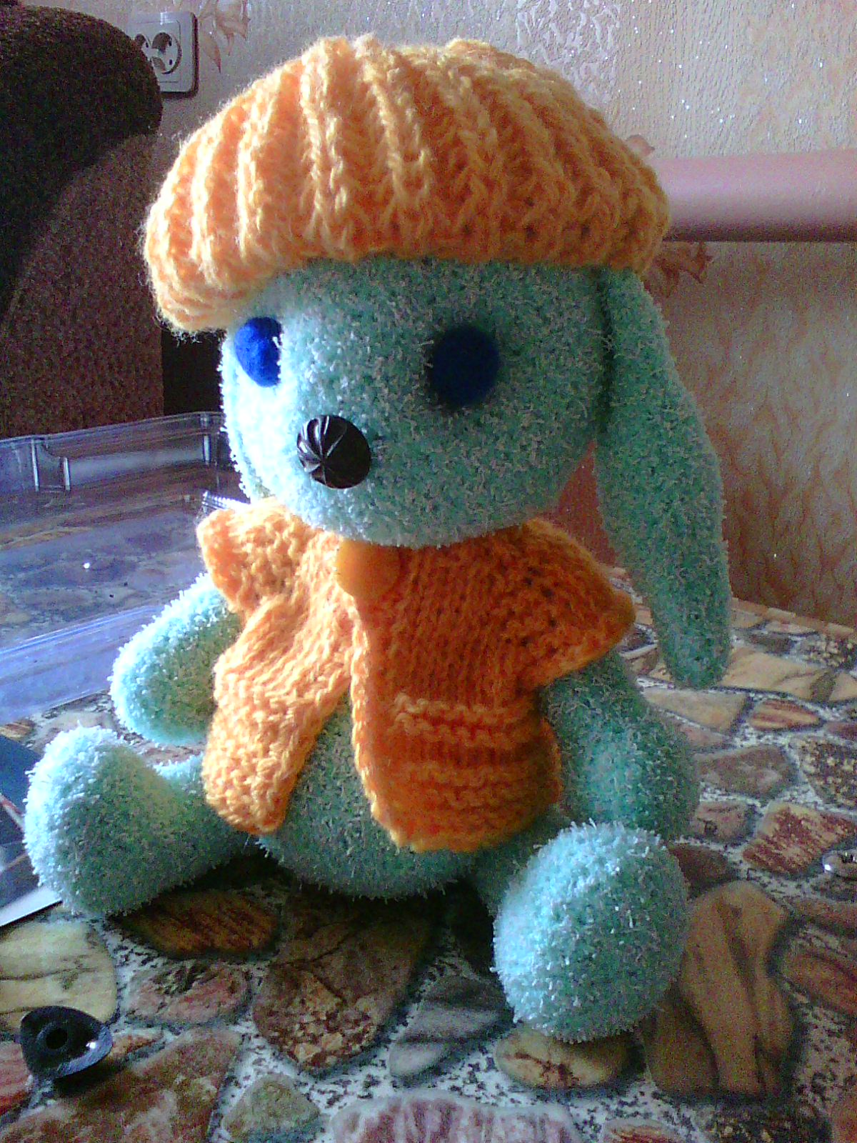 Авторская работа одна из первых.Использовалась пряжа Барба,пуговично -шплинтовое крепление,глазки валяные