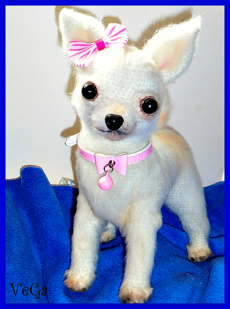 Собачка чихуа хуа,откликается на кличку Лунв, размер настоящей живой собачки этой породы -25х23см в длину. М.к. Олеси Царёвой.