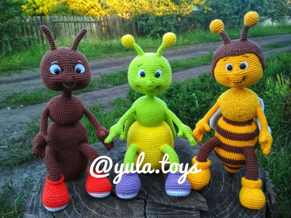 МК "Букашки-Мурашки" - авторский. Рост 24-26см, без учета усиков. На проволочном каркасе. Связаны из полу хлопковой пряжи Alize Cotton Gold, крючком №2. Два способа крепления глазок (на безопасном креплении и приклееные полу бусинки)