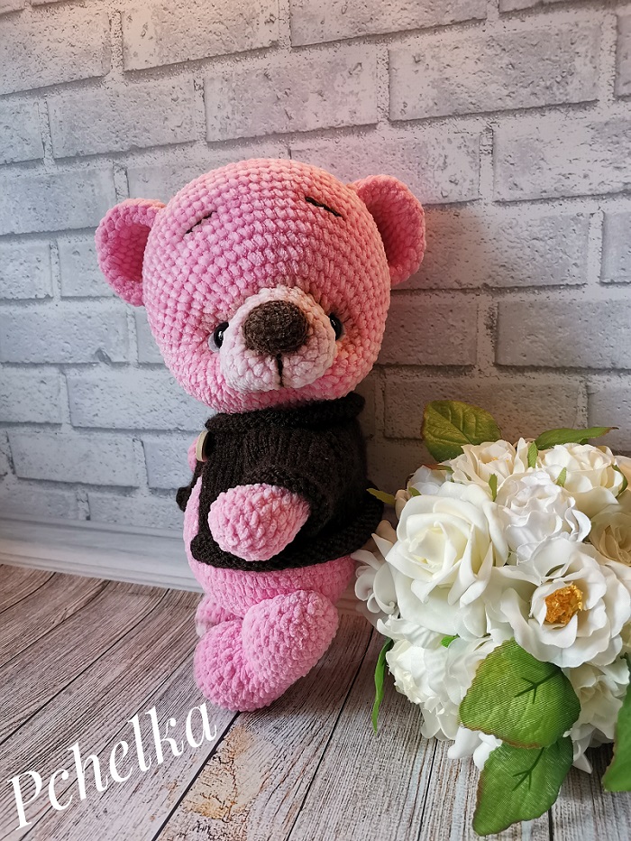 мишка ростом 27см стоя, 22 см сидя, связанный из плюшевой пряжи, милый, мягкий, сладкий как зефир.... Ищет дом. Голова, ручки и ножки поворачиваются. Сидит сам, стоит с опорой. Кофточка снимается. Блин, он такой классный, я б его не выпускала из рук. по МК А. Садовской
